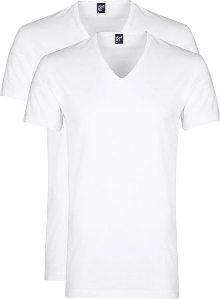 Deze set met twee T-shirts van Alan Red is een echte musthave voor iedere man die van fijne basics houdt. De shirts hebben namelijk een middeldiep uitgesneden V-hals, waardoor ze perfect zijn om bijvoorbeeld onder een overhemd te dragen. Het bovenste knoopje kun je dan open laten. De Alan Red Dean T-shirts hebben een getailleerde, slim-fit pasvorm die mooi aangesloten langs het lichaam valt. Het Dean shirt is gemaakt van 100% katoen (150 gram). Het katoen is rondgebreid en heeft dus geen naden aan de zijkant. Dankzij deze luxe kwaliteit katoen voelt de stof heerlijk zacht en soepel aan.