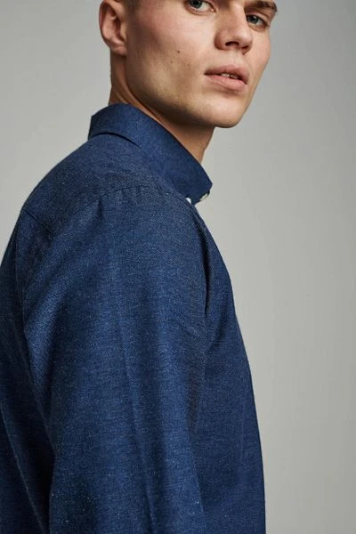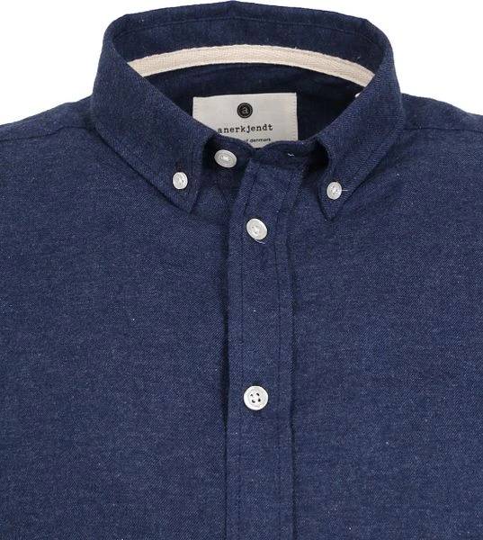 De kleding van het Deense merk Anerkjendt staat bekend om haar fraaie ontwerpen en modieuze details. Dit casual Akkonrad overhemd heeft een stijlvolle donkerblauwe melange kleur en is afgewerkt met lichtgekleurde knopen en een button down boord.