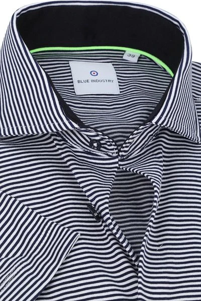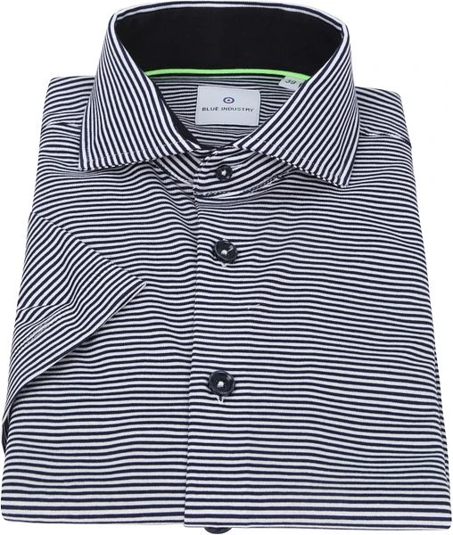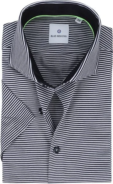 Met dit short sleeve overhemd van Blue Industry voorzie jij jouw outfit van een vrolijke touch. Het trendy herenshirt is voorzien van een subtiel blauw-wit strepen dessin in een jersey binding, waardoor het overhemd een moderne uitstraling krijgt. De widespread boord, enkele manchetten en contrasterende knopen dragen bij aan de stijlvolle uitstraling van het ss dress-shirt. Combineer het overhemd met korte mouwen op een chino voor een geklede look of draag het overhemd op een jeans voor een meer casual uitstraling.