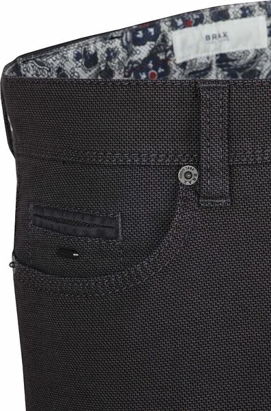 Deze Cadiz broek van Brax is ontwikkeld met de fijnste kwaliteit katoen gemixt met elastaan (stretch) waardoor de chino je een prettige stretch, zachte touch en een erg hoog draagcomfort biedt. Daarnaast zorgt de herenbroek voor een stijlvolle uitstraling, doordat deze een stijlvolle donkergrijze kleur heeft die eenvoudig te combineren is. Het Cadiz model is voorzien van een ritssluiting, stijlvolle details, twee broekzakken aan de achterzijde en twee steekzakken plus een coinpocket aan de voorzijde.