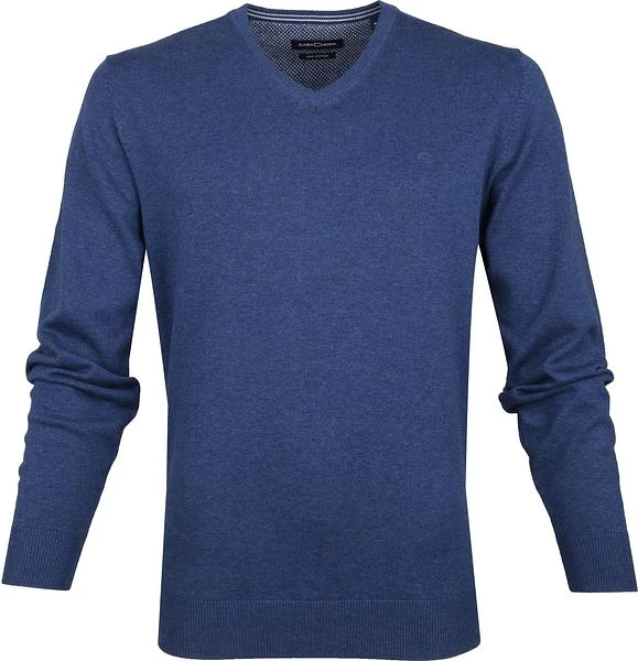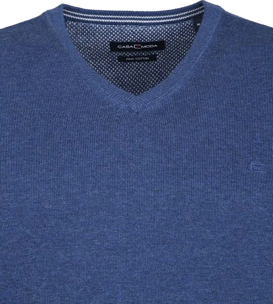 Ga voor stijlvol én comfortabel met deze tijdloze pullover van Casa Moda. De herentrui heeft een modische middenblauwe kleur en is afgewerkt met een V-hals en een ton sur ton geborduurd merklogo. Dit zorgt ervoor dat de pull eenvoudig te combineren is met bijvoorbeeld een chino, jeans of over een overhemd. Hierdoor loop je er dit seizoen stijlvol en verzorgd bij in deze pullover van Casa Moda.