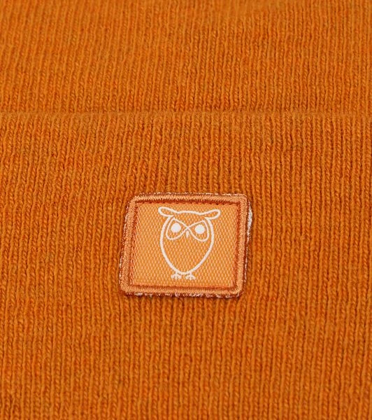 Met deze muts van KnowledgeCotton Apparel ga je zowel comfortabel als trendy de deur uit. De warme muts heeft een oranje kleur en het merklogo op de voorzijde. Doordat de muts gemaakt is van 100% wol blijf je lekker warm tijdens de koudere dagen van het jaar.