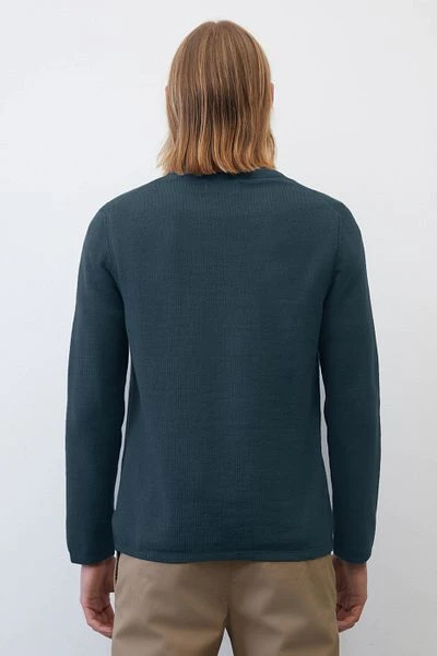 Met deze trui van Marc O’Polo ga je voor een stijlvolle look en optimaal comfort. De herentrui heeft een modieuze petrol blauwe kleur. Combineer de pull met een stijlvol colbert voor een geklede look of draag het model op een jeans of chino voor een casual touch. Een onmisbaar item voor in je garderobe!
