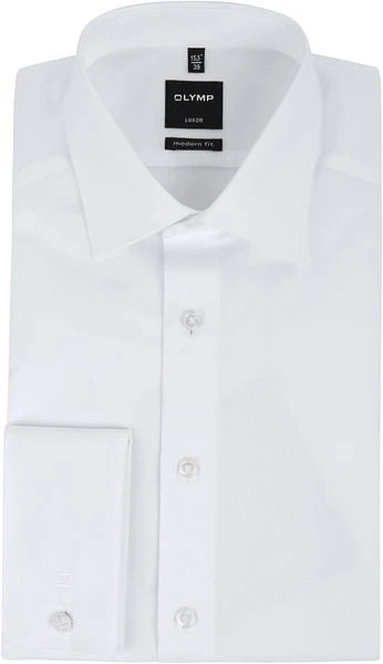 Een klassiek overhemd met dubbele manchet is perfect voor een formele gelegenheid of gewoon een chique look tijdens uw werk. Dit witte herenshirt van Olymp is kraakhelder en zal daardoor prachtig staan bij een grijs of navy kostuum.
