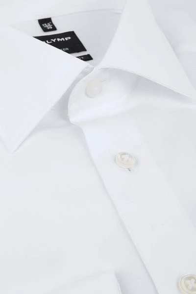 Dit witte overhemd is gemaakt van strijkvrij katoen en geeft daardoor een extra gevoel van luxe. Het non-iron overhemd van Olymp is voorzien van een widespread boord en heeft geen borstzakje. De modern-fit pasvorm is licht getailleerd, waardoor je er indien gewenst eenvoudig een T-shirt onder kunt dragen.