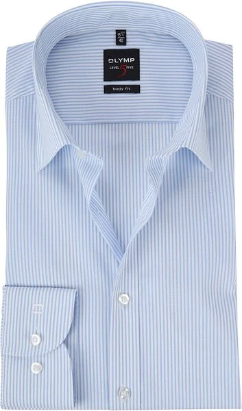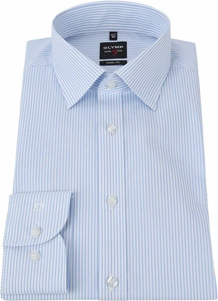 De overhemden uit de Level 5 collectie van Olymp staan bekend om hun slanke pasvorm en stijlvolle look. Dit herenshirt heeft een tijdloze blauw witte kleur, is voorzien van een klassieke Kent boord en een streepdessin.