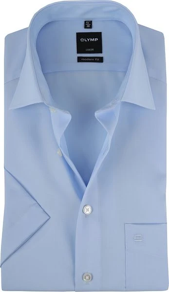Dit Olymp overhemd komt uit de Luxor collectie, heeft korte mouwen en heeft een lichtblauwe kleur. Verder is het herenshirt voorzien van een traditionele kent boord en een borstzakje. Doordat het overhemd een licht getailleerde modern-fit (MF) pasvorm heeft en is gemaakt van 100% ‘non-iron’ katoen, kan deze direct na het wassen aangetrokken worden en zie je er meteen weer verzorgd uit.