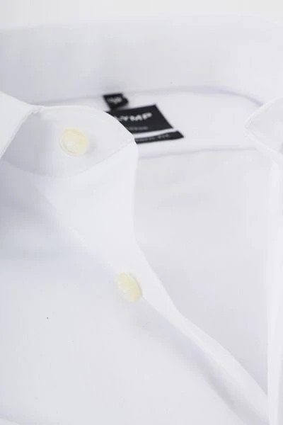 Met dit witgekleurde overhemd uit de Luxor Modern-Fit collectie van Olymp haal je een casual variant van het klassieke witte dress-shirt in huis. Het overhemd is afgewerkt met korte mouwen, een traditionele kent boord en een borstzakje met een ton sur ton borduursel.