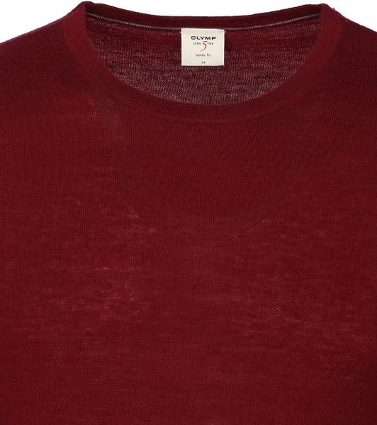 De fijngebreide trui van Olymp uit de Level 5 collectie is erg veelzijdig, sportief en luchtig. De trui heeft een stijlvolle donkerrode kleur en is afgewerkt met een ronde hals. Aan de rechter onderzijde is een klein logo detail verwerkt, daarnaast zijn de mouwen, de onderzijde en is de boord afgewerkt met een elastische band. De pullover van Olymp is een onmisbare basic in de stijlvolle vrijetijdsgarderobe.