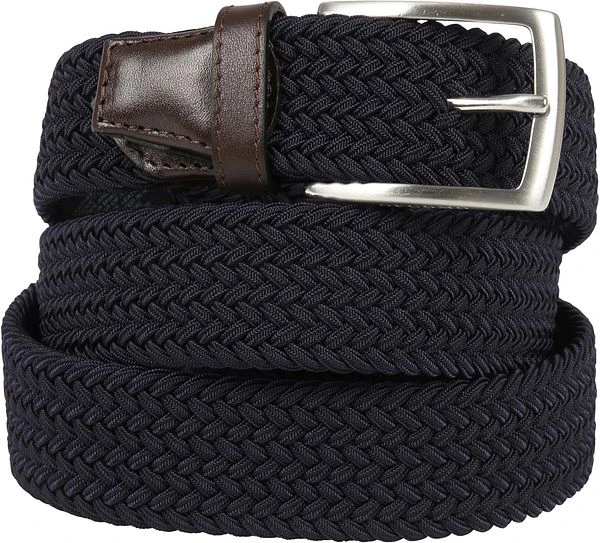 Je outfit is pas echt compleet met deze gevlochten donkerblauwe navy riem van Profuomo. Kies voor deze stijlvolle riem en geniet van de mooie afwerking en de moderne uitstraling. Deze herenriem is elastisch en heeft een zilver gekleurde gesp. Draag de riem bij uw favoriete jeans, een chino of een pantalon. Dankzij het ontwerp is deze riem gemakkelijk te combineren bij verschillende outfits.