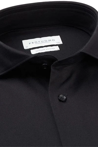Dit overhemd, voormalig Sky Blue model, van Profuomo voorziet jou dit seizoen van een stijlvolle uitstraling met een enkele moderne details. Het herenshirt heeft een effen dessin in een klassieke zwarte kleur. Zijn moderne look krijgt het overhemd door zijn cutaway boord en manchetten, die het dress-shirt een modische touch geven. Combineer het overhemd met een stijlvol colbert voor een smart casual look of draag deze onder een pullover of op een chino voor een meer casual uitstraling.