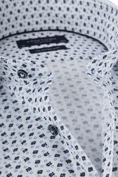 Met dit korte mouw overhemd van Profuomo haal je een stijlvol dress shirt in huis. Dit multicolour shirt is voor zien van een all over dessin voor een moderne uitstraling. Het herenshirt heeft een knitted binding en is afgewerkt met een modische cut-a-way boord, contrasterende knopen en korte mouwen.