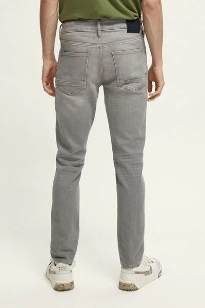 Met deze Skim jeans van Scotch and Soda haal je een trendy broek in huis. De herenbroek heeft een moderne grijze ‘Grey Stone’ kleur met gewassen effect en voorziet je outfit zo van een klassieke look met een herkenbare Scotch & Soda twist. Daarnaast is het five-pocket model afgewerkt met een ritssluiting, twee broekzakken aan de achterzijde en twee steekzakken met een coin- pocket/muntzakje aan de voorzijde.
