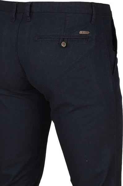 Met deze Locke chino van Suitable haal je zowel een stijlvolle als een comfortabele herenbroek in huis. De moderne chino heeft een stijlvolle donkerblauwe ‘Navy’ kleur met een subtiel all-over dessin. Daarnaast is de broek afgewerkt met een bruine knoop, een ritssluiting, twee steekzakken aan de voorzijde, coinpocket en twee klepzakken met knoopsluiting aan de achterzijde. Het Locke model zit tussen een chino en een pantalon in waardoor deze erg makkelijk te combineren is.