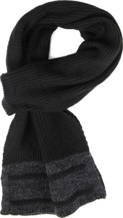 De zachte heren sjaal van Suitable heeft een zwarte kleur en is door zijn lengte op vele manieren te dragen. De sjaal is afgewerkt met donkergrijze uiteindes. Completeer je herfst- of winterlook met deze combinatie van warmte, comfort en stijl.