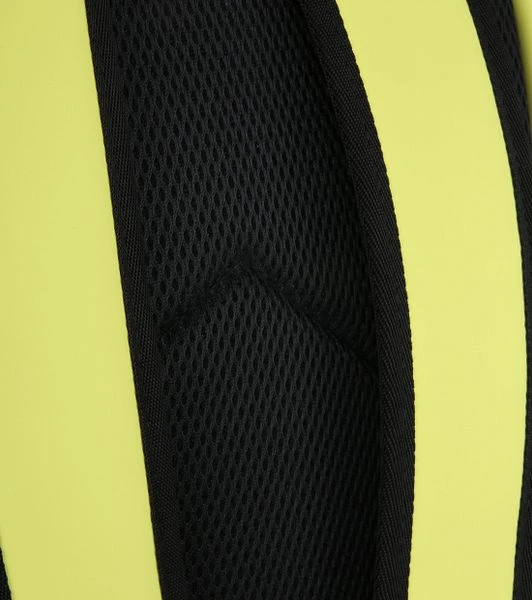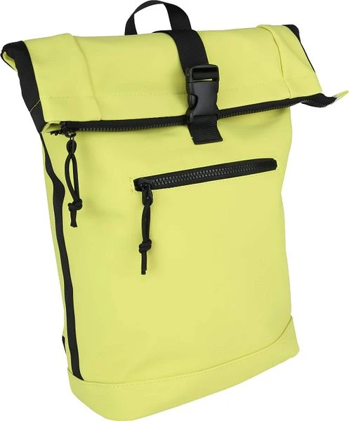 Dit is een trendy rugzak van Suitable. De neon gele koeriersrugzak heeft een zwarte rits- en kliksluiting voor het grote compartiment en een ritssluiting voor het kleine vakje aan de voorkant. In de binnenkant is de rugzak voorzien van isolatiemateriaal. Dit zorgt ervoor dat eet- en drinkwaren op temperatuur blijven. De backpack is gemaakt van gerubberd kunststof.