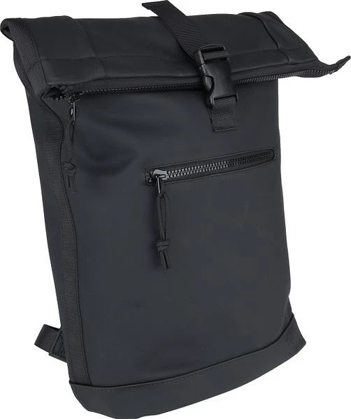 Dit is een trendy rugzak van Suitable. De zwarte koeriersrugzak heeft een rits- en kliksluiting voor het grote compartiment en een ritssluiting voor het kleine vakje aan de voorkant. In de binnenkant is de rugzak voorzien van isolatiemateriaal. Dit zorgt ervoor dat eet- en drinkwaren op temperatuur blijven. De backpack is gemaakt van gerubberd kunststof.