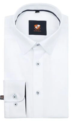 Met dit overhemd van Suitable haal je een dress-shirt in huis die je outfit een modische twist geeft. Het shirt heeft een stijlvolle witte kleur en een uni dessin. De trendy widespread boord, enkele manchetten en lichtgekleurde knopen, zorgen ervoor dat het overhemd een overall modische, casual look krijgt.