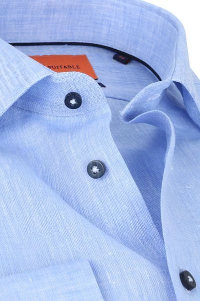 Kies voor een casual dress-shirt overhemd die je outfit compleet maakt met dit overhemd van Suitable. Het herenshirt heeft een moderne blauwe kleur met een poplin binding, die zorgt voor een trendy uitstraling. Daarnaast is het moderne overhemd voorzien van een klassieke widespread (WS) boord, enkele manchetten en bijpassende donkerblauwe knopen.