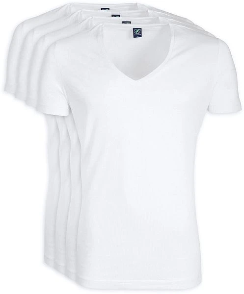 Set van 4 witte, basic Bamboe T-shirts met extra diepe V-hals.