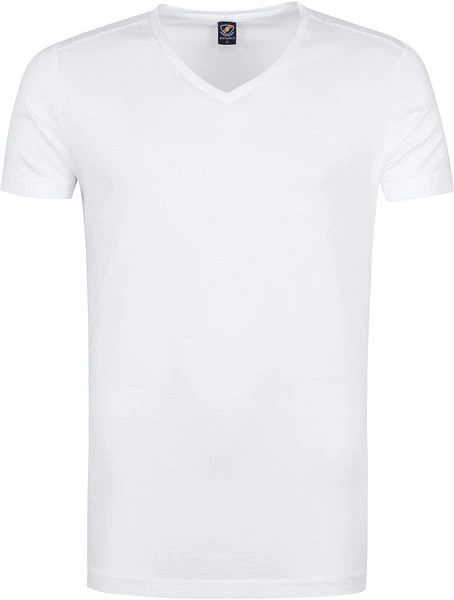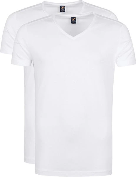 Het 2-pack short sleeve T-shirts bevat twee shirts die gemaakt zijn van 95% fijn gekamd, biologisch katoen (150 grams) en 5% elastaan (stretch). Daarnaast zijn de witte Vitasu shirts bewerkt met een Soft Silk Finish, waardoor de stof heerlijk zacht en glad aanvoelt. De korte mouwen zijn voorzien van een gezoomde afwerking en de subtiele V-hals heeft een mooie smalle boord. Verder zijn de T-shirts voorzien voor een langere body (lengte) voor extra draagcomfort.