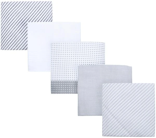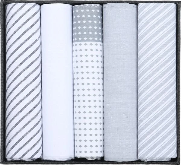 - Vijf zakdoeken in een grijze kleur met diverse patronen