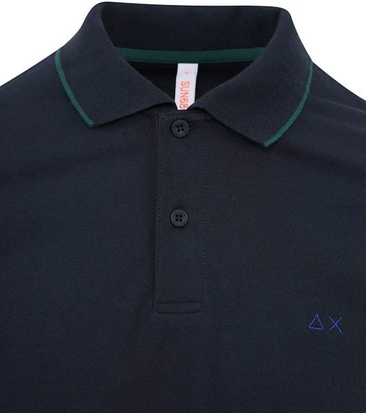Met dit klassieke poloshirt van Sun68 haal jij een moderne polo in huis. Het poloshirt heeft een Modern-Fit pasvorm en valt licht getailleerd om je bovenlichaam. De boord en het logo van de polo hebben een blauwe en groene kleur.