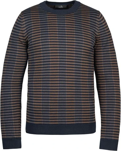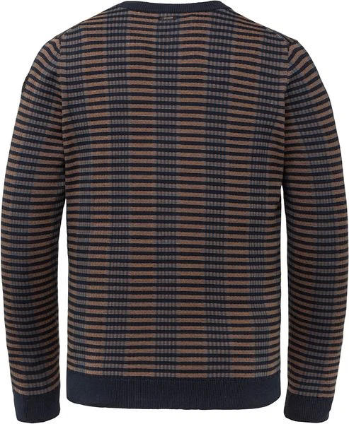 De herenkleding van Vanguard staat bekend om haar goede kwaliteit en moderne ontwerpen met stoere details. Deze trendy herentrui heeft een stijlvolle bruine kleur en is afgewerkt met een donkerblauw strependessin. Verder is de pull voorzien van een ronde hals en rib boorden rondom de mouwen. Hierdoor krijgt deze Vanguard trui een trendy touch.
