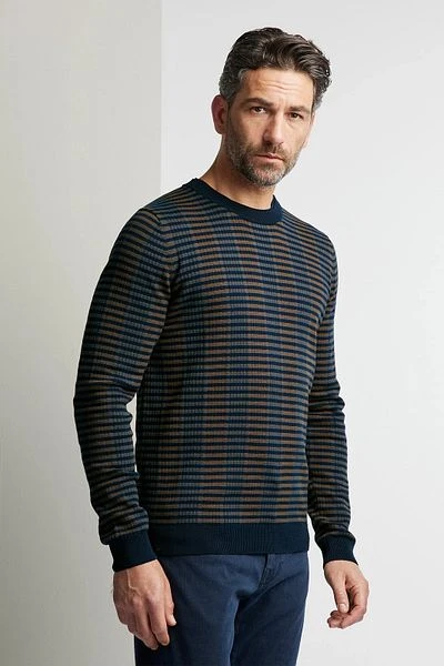 Zijn comfort krijgt de herentrui van de 100% katoen waarmee deze ontwikkeld is. Dit zorgt er samen met de licht getailleerde Modern-Fit pasvorm voor dat je er dit seizoen naast stijlvol ook met een hoog draagcomfort bijloopt.