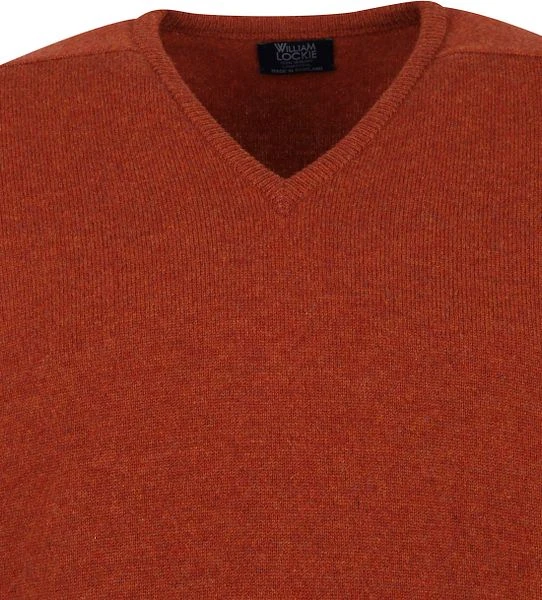 Met deze pullover van William Lockie combineer je hoge kwaliteit, veel comfort en een tijdloze uitstraling. De herentrui heeft een brique kleur en is voorzien van een v-hals. Het subtiele gemêleerde dessin krijgt de pullover door het gebruik van mouliné garen, die qua kleur subtiel van elkaar afwijken. Combineer de wollen trui met een overhemd en chino of draag hem op jouw favoriete jeans.