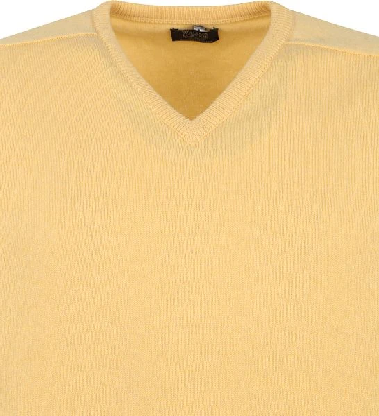 Met deze pullover van William Lockie combineer je hoge kwaliteit, veel comfort en een tijdloze uitstraling. De herentrui heeft een gele kleur en is voorzien van een v-hals. het subtiele gemêleerde dessin krijgt de pullover door het gebruik van mouliné garen, die qua kleur subtiel van elkaar afwijken. Combineer de wollen trui met een overhemd en chino of draag hem op jouw favoriete jeans.